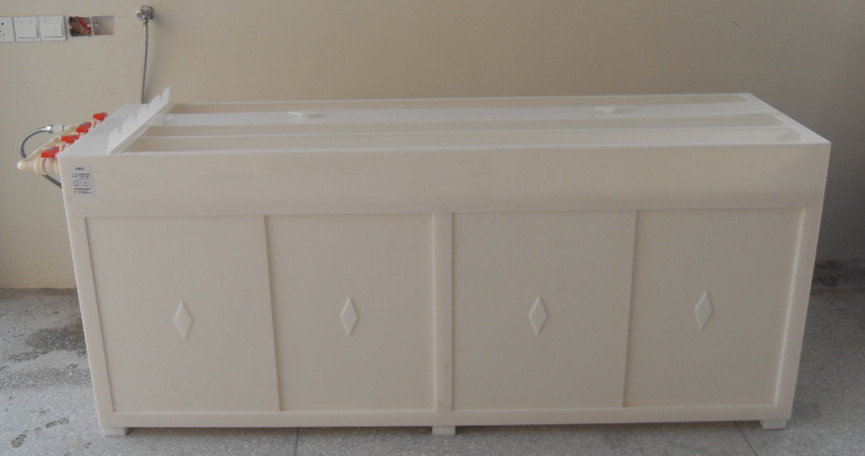 結(jié)構(gòu)材質(zhì):槽體:采用PMMA樹(shù)脂板材吸塑成型、抗壓強(qiáng)度高、耐腐蝕易清潔、對(duì)人體無(wú)毒,不磨損鏡體表面。下柜:采用板材組裝。閥門(mén):采用陶瓷芯片全銅閥門(mén),配備高壓水槍接頭。可根據(jù)使用單位要求配置方槽、立槽數(shù)量。