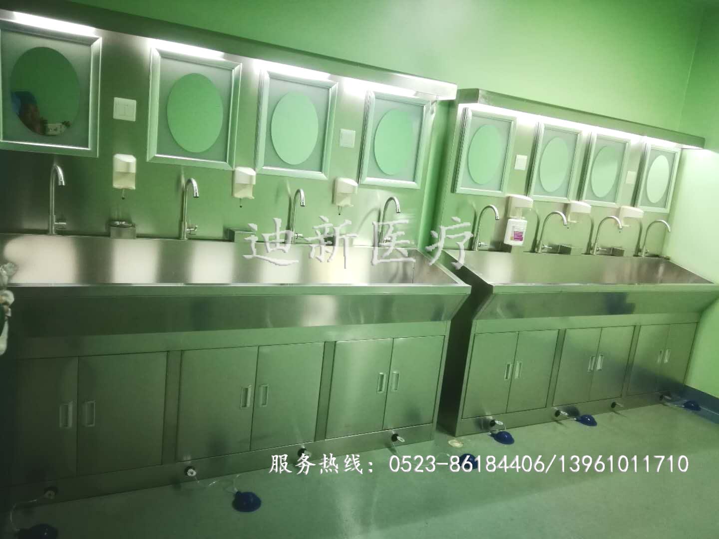 熱烈祝賀廈門紅谷生物技術(shù)有限公司304不銹鋼三人位、四人位腳踏式洗手池安裝調(diào)試完畢! 迪新304不銹鋼腳踏洗手池采用優(yōu)質(zhì)304不銹鋼雙層制作,一體化無焊縫池體,極易清潔,經(jīng)久耐用;漏電保護設(shè)計,保證了操作人的使用安全;槽體中間特殊靜音處理,造型美觀大方,使用比較方便;安裝腳踏開關(guān),主要使用腳踏出水,出水方便;配置304不銹鋼鵝頸水龍頭,造型美觀;配備腳踏控制皂液器,使用方便衛(wèi)生,避免了二次污染;豪華高背板,配置美容鏡;還可根據(jù)客戶的要求配置熱水器和烘手器。 下面迪新小編給大家展示一下現(xiàn)場的安裝圖片:   |